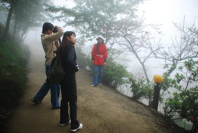 鳥嘴山步道的登山口就在鳥嘴山露營場後方,一到這裡後,有相機的人就開始亂拍,霧裡就是等一下要進入的鳥嘴山了